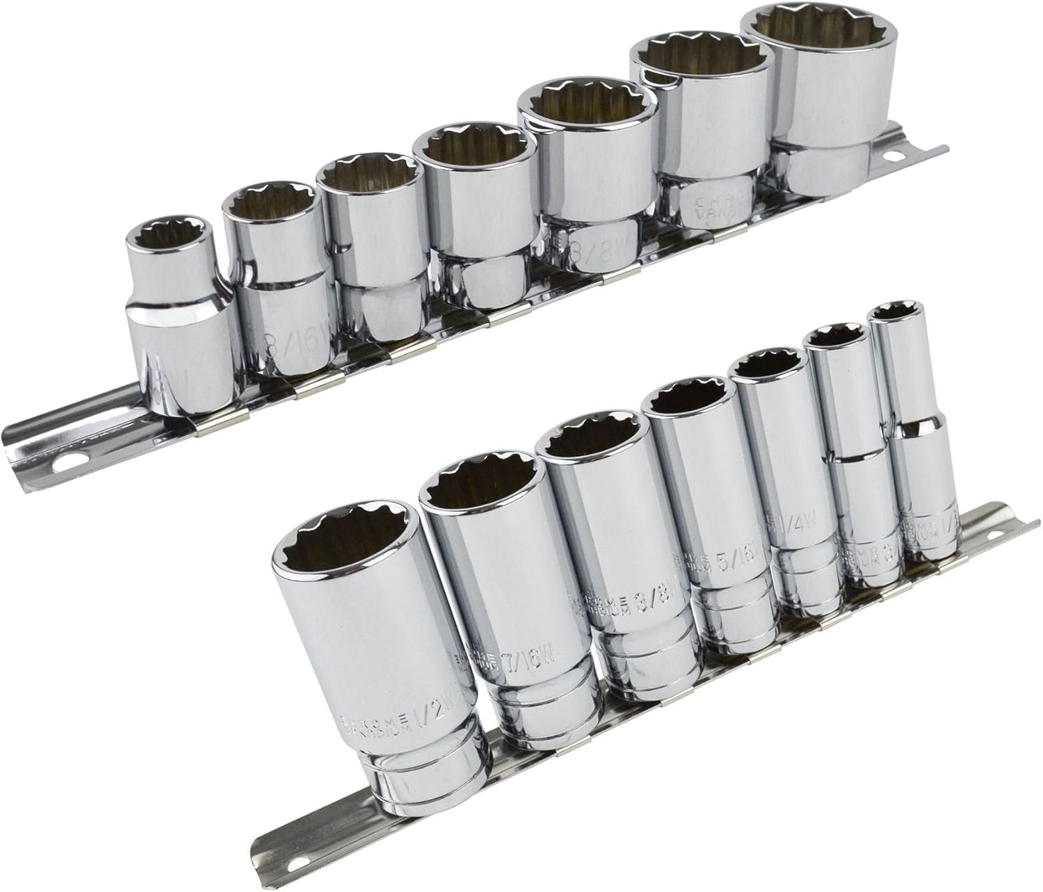 Whitworth BSF BSW 3/8" Drive Shallow And Deep Sockets 14pc 12 Sided Bi-Hex