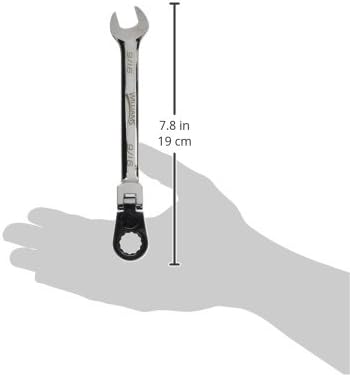 Snap-on Industrial Brand JH Williams 8-Piece reversible flex head ratcheting Combination Wrench Set has a flex head that pivots 90-Degree in either direction for access in tight areas and a fine tooth design with dual pawl mechanism for extra strength. There is a high polished chrome finish that cleans easily and the ratchet lever is easily accessible for quick direction changes. There are recessed corners in the ends that provide extra turning power. The size ranges from 5/16 to 3/4-Inch.