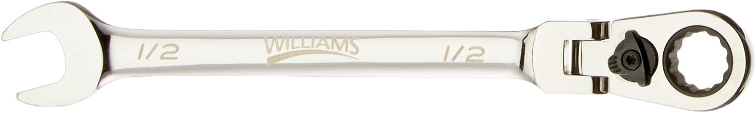 Williams Reversible Flex-Head Ratcheting Combination Wrenches feature a Flex-Head that pivots in 90 Degrees in either direction for access in tight areas. The tool features fine tooth design with a dual-pawl mechanism for extra strength. The ratchet is high-polished and cleans easily. With a ratchet lever that is easily accessible for quick direction changes and recessed corners in ends that provide extra turning power, this ratchet is not just heavy-duty but industrial duty. Williams has made strong, trusted tools for industrial professionals with pride since 1882.
