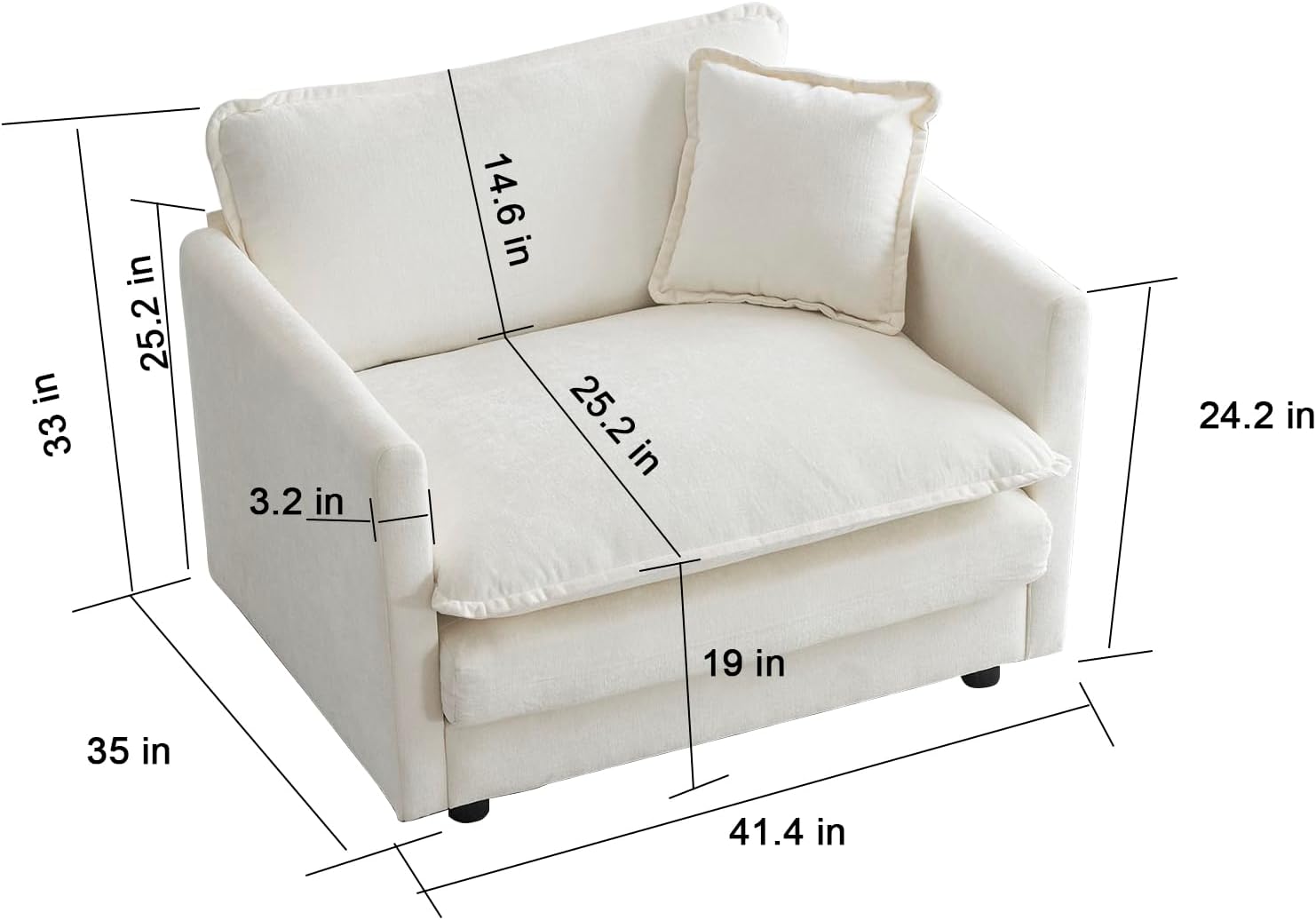 WILLIAMSPACE 41" Single Sofa Chair, Modern Upholstered Armchair with 1 Toss Pillow, Small Cream Couch Chair for Living Room, Deep Seat Reading Sofa for Bedroom Apartment, Chenille Fabric (Cream White)