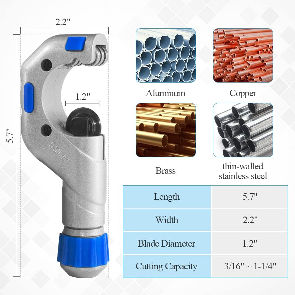 WiseWater HVAC Tubing Expander Kit, Tube Swaging Set Includes 3/8'' to 1-5/8''Expander Heads, Tube Cutter, Reamer, Deburring Tool for Soft Copper, Aluminum, Brass Tubes
