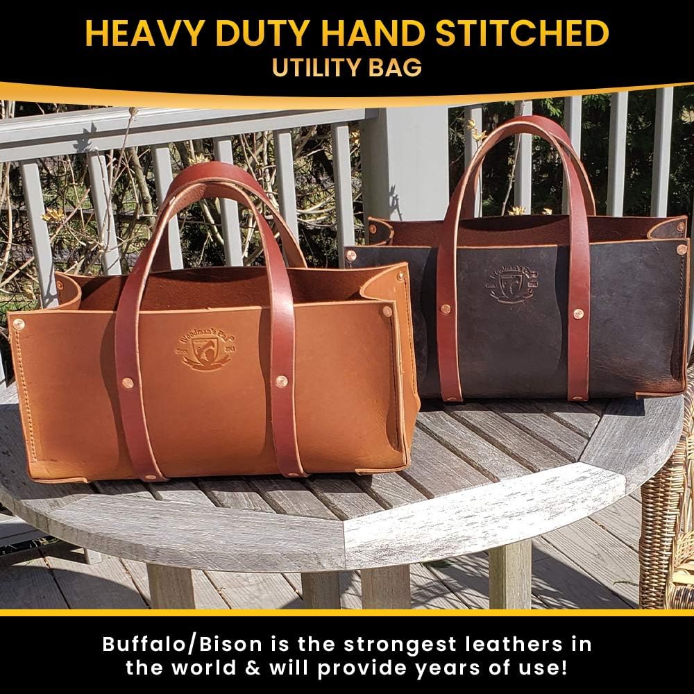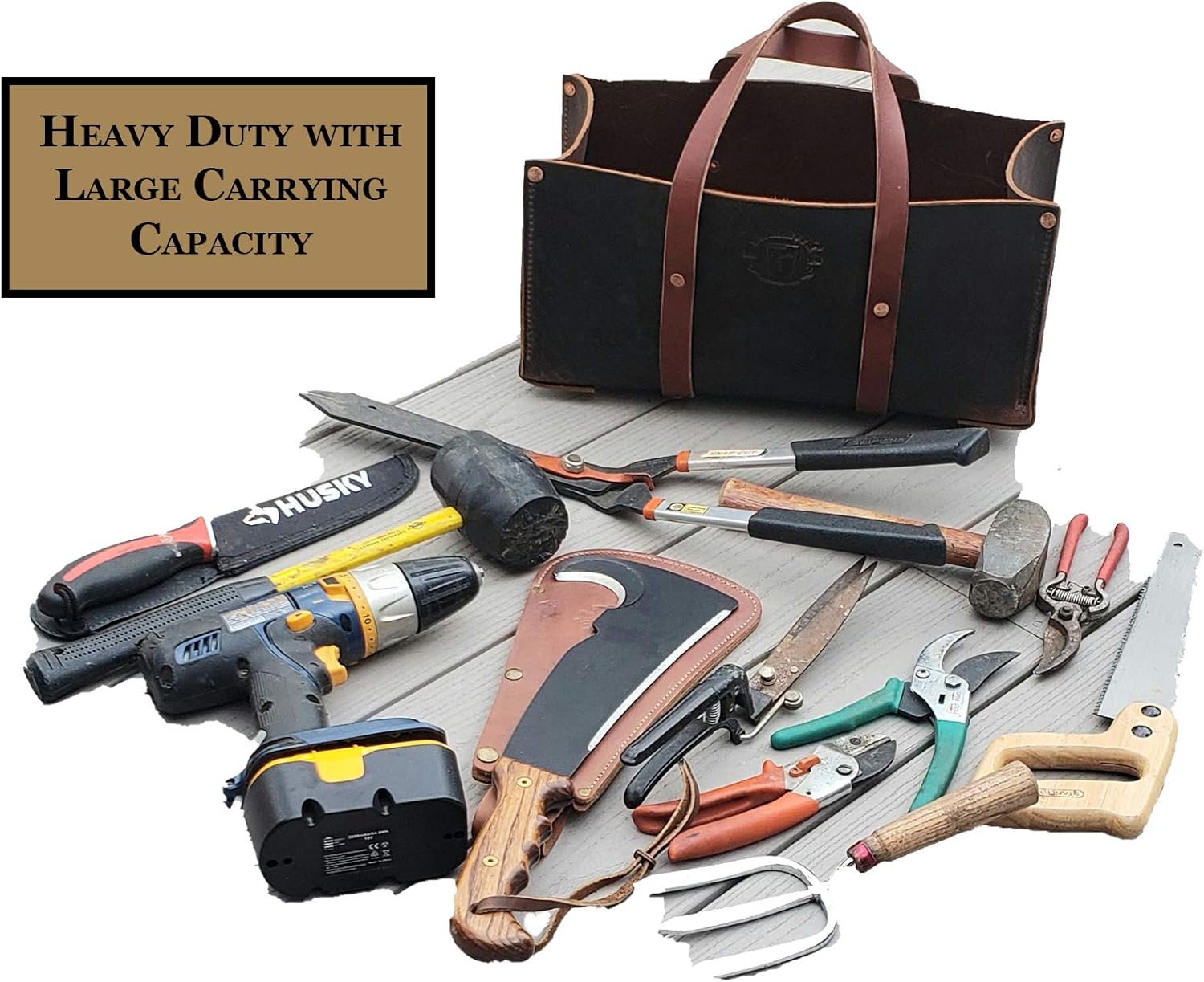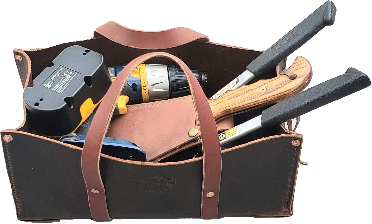 Woodman's Pal Buffalo Leather Tote Tool Bag For Hand Tools, Gardening, Outdoorsmen, Heavy Duty Premium Storage Leather Organizer (Golden Brown)