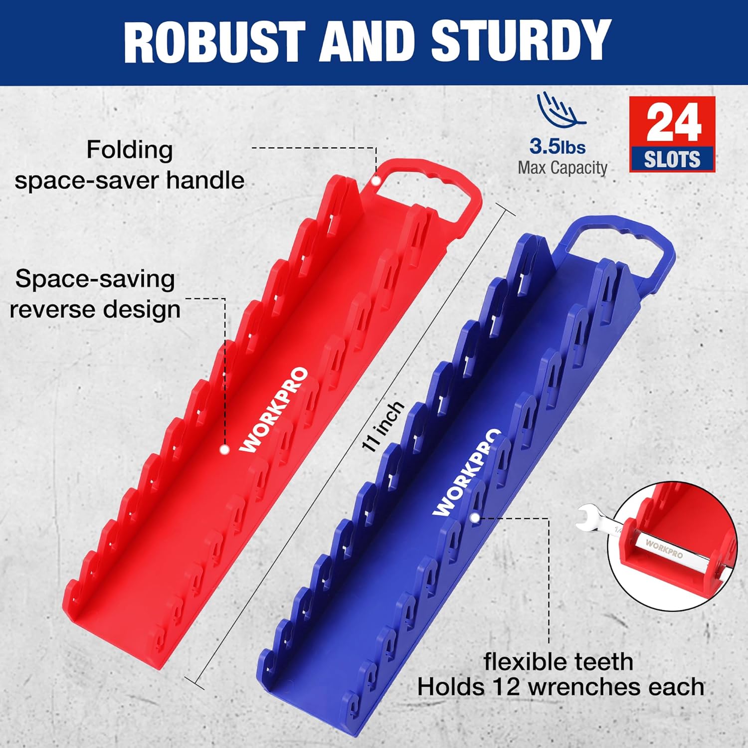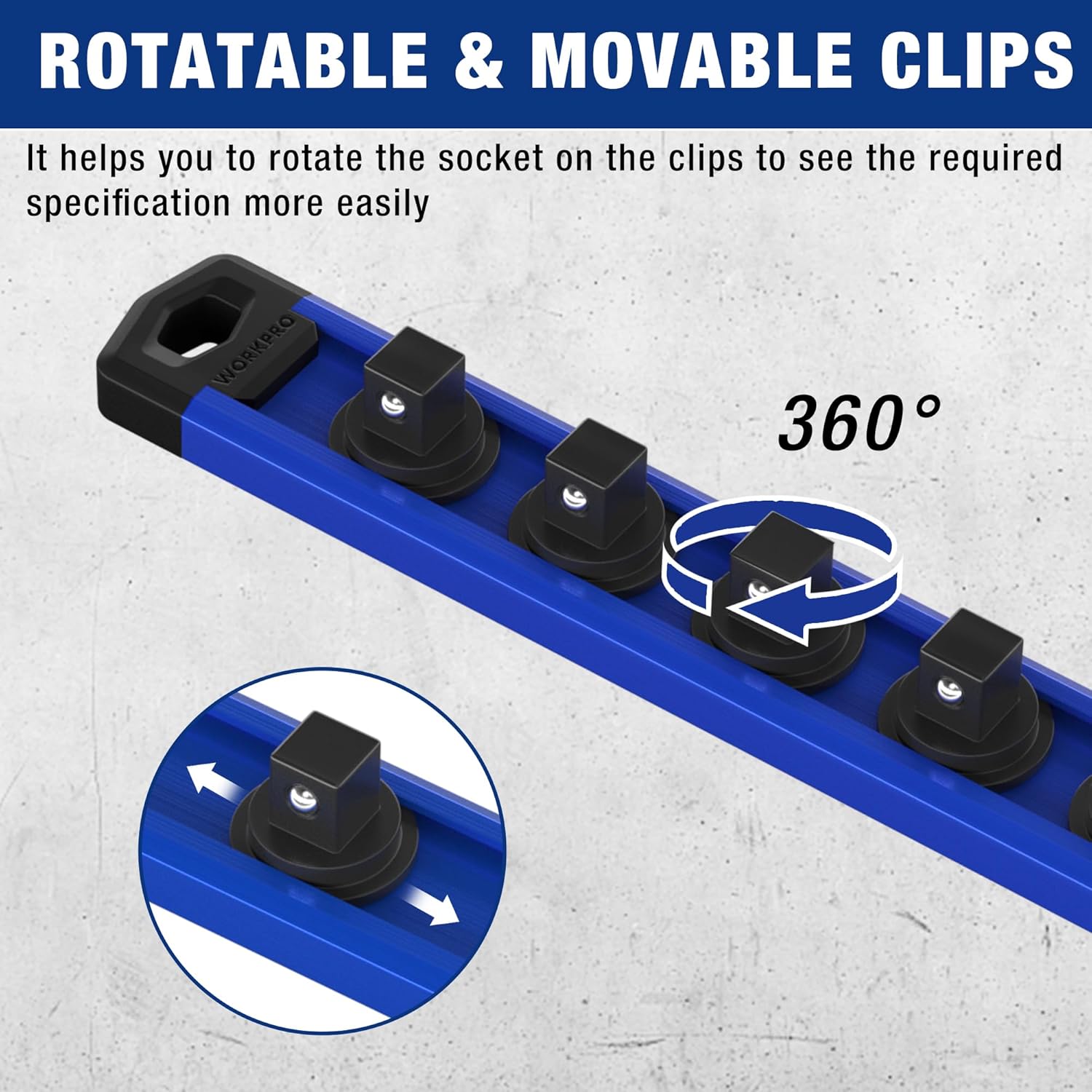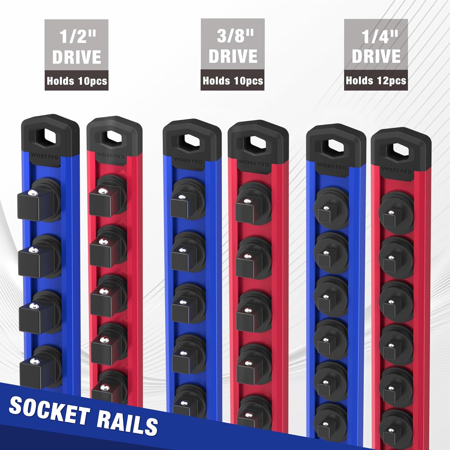 WORKPRO 8-Piece Magnetic Socket Organizer and Magnetic Wrench Organizer Set, 1/4", 3/8", 1/2" Drive Metric SAE Aluminum Alloy Socket Rail, Metric SAE Wrench Holder(Socket, Wrench not Included)