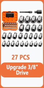 XEWEA Upgrade Screw Extractor Set, 27 PCS 3/8" Inch Drive Easy Out Bolt Extra...