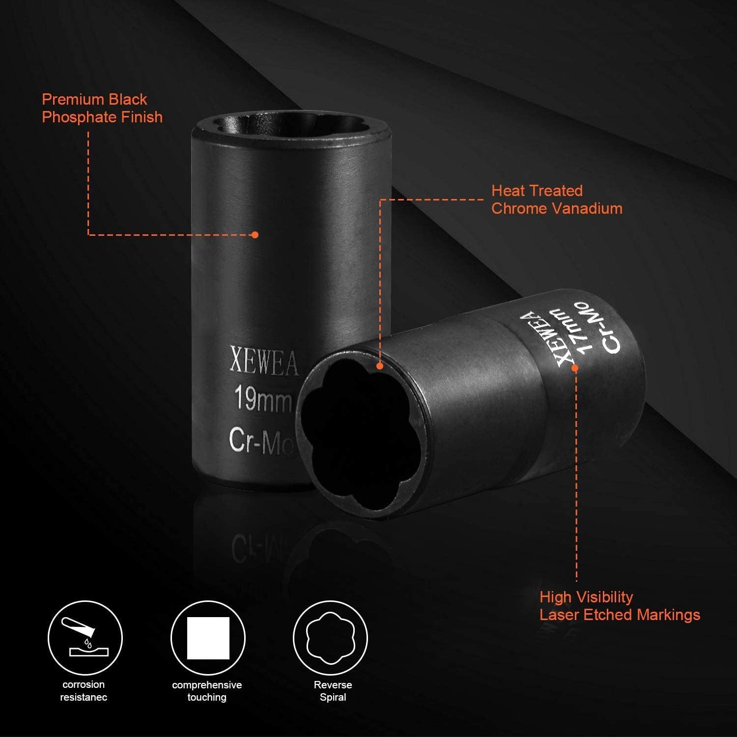 XEWEA 15PCS 1/2" Drive Lug Nut Removal Tools, Striped Wheel Lock Removal Kit Easy Out Twist Socket Extractor Set for Damaged, Frozen, Rusted, Rounded-Off Bolts Nuts & Screws