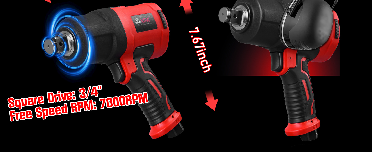 XIIW 3/4 Inch Air Impact Wrench, Max Nut-busting Torque 1950 ft-lbs, Heavy Duty 7000RPM 3/4 Air Drive Impact Gun, Twin Hammer Pneumatic Tool for Automobile Repair