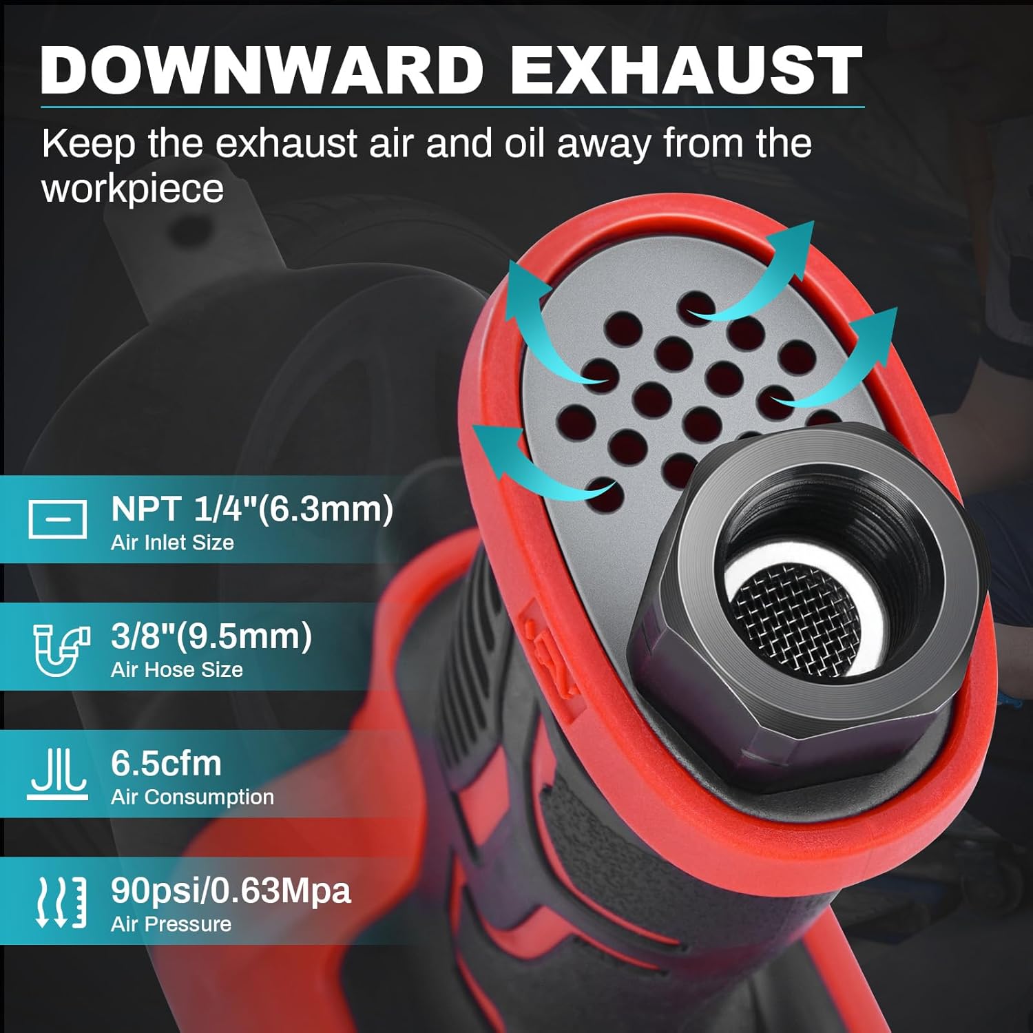 For optimal performance, it is essential to maintain a minimum operational airflow of 90 PSl and 6.5 CFM. To harness its full potential, a higher airflow of up to 120 PSl is required, as lower pressure levels may result in diminished power output.