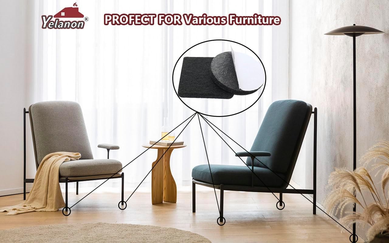 Yelanon Felt Furniture Pads -182 Pcs Premium Felt Pads for Chair Legs Furniture, Floor Protectors for Hardwood Floors, Black