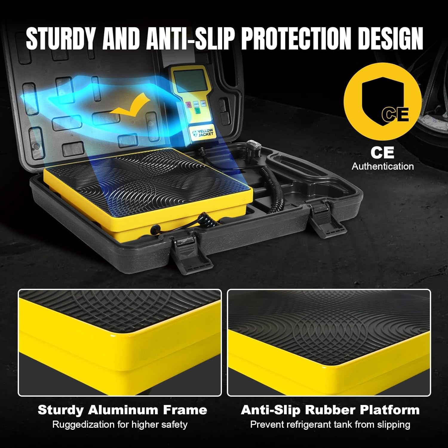 YELLOW JACKET Upgraded Refrigerant Scale 220 LBS High Precision Programmable HVAC Electronic Refrigerant Charging Weight Scale Freon Scale with Portable Case for All Refrigerant Recovery Tanks