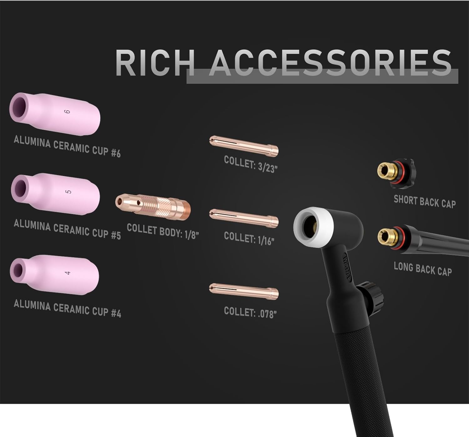 YESWELDER Tig Welding Torch WP-17FV(Gas-Valve Head) Flexible Head Air-Cooled TIG Complete Torch with 12ft Cable