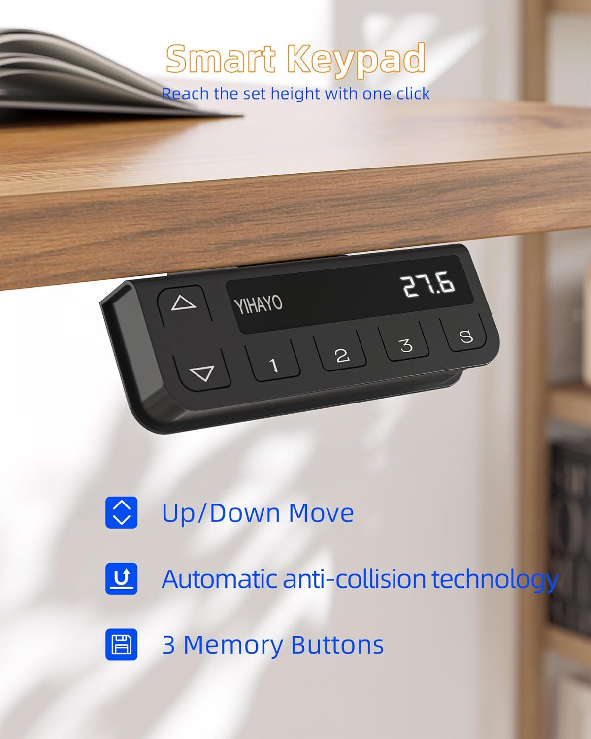 YIHAYO Electric Standing Desk, 48 x 24 Inches Stand Up Desk with Splice Board, Adjustable Height Desk, Computer Desk for Home Office, Black Frame/Rustic Brown Top