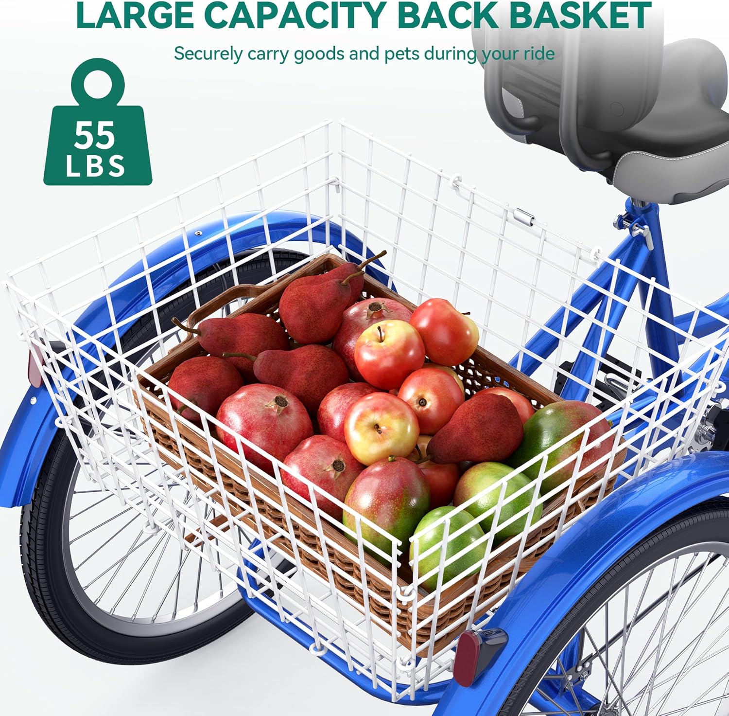 YITAHOME 24 & 26 Inch Adult Tricycle, 1 & 7 Speed 3 Wheel Bikes, Large Seat with Backrest Trike for Adults with Front & Rear Baskets, Cruiser Bike for Seniors Women Men Commute Picnic Outdoor