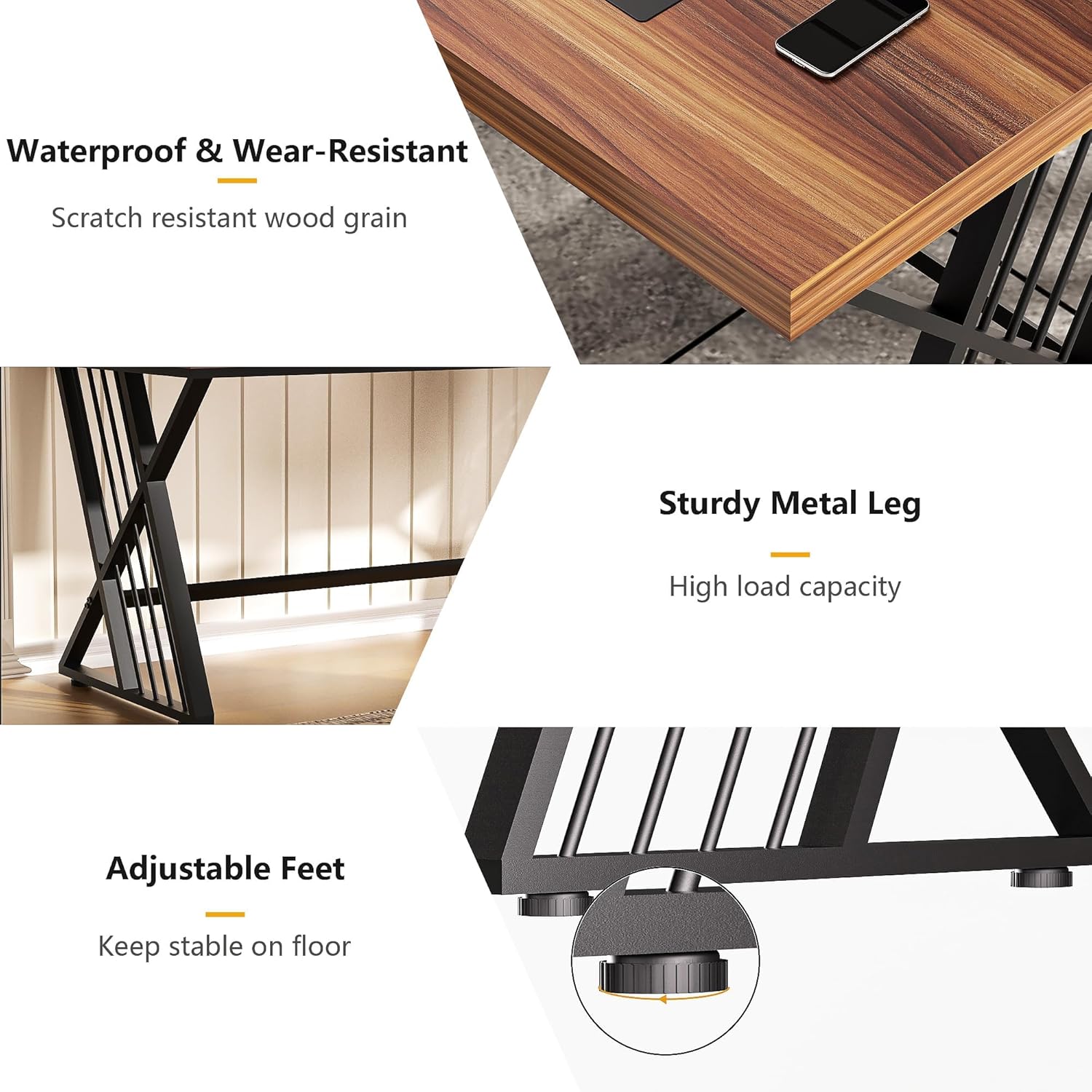 Whether you need a home office desk for remote work, an executive desk for client meetings, or a study desk for students, this versatile design fits seamlessly. The neutral walnut finish complements modern, rustic, or industrial decor, while the 23.6" depth offers comfortable legroom for all-day use.