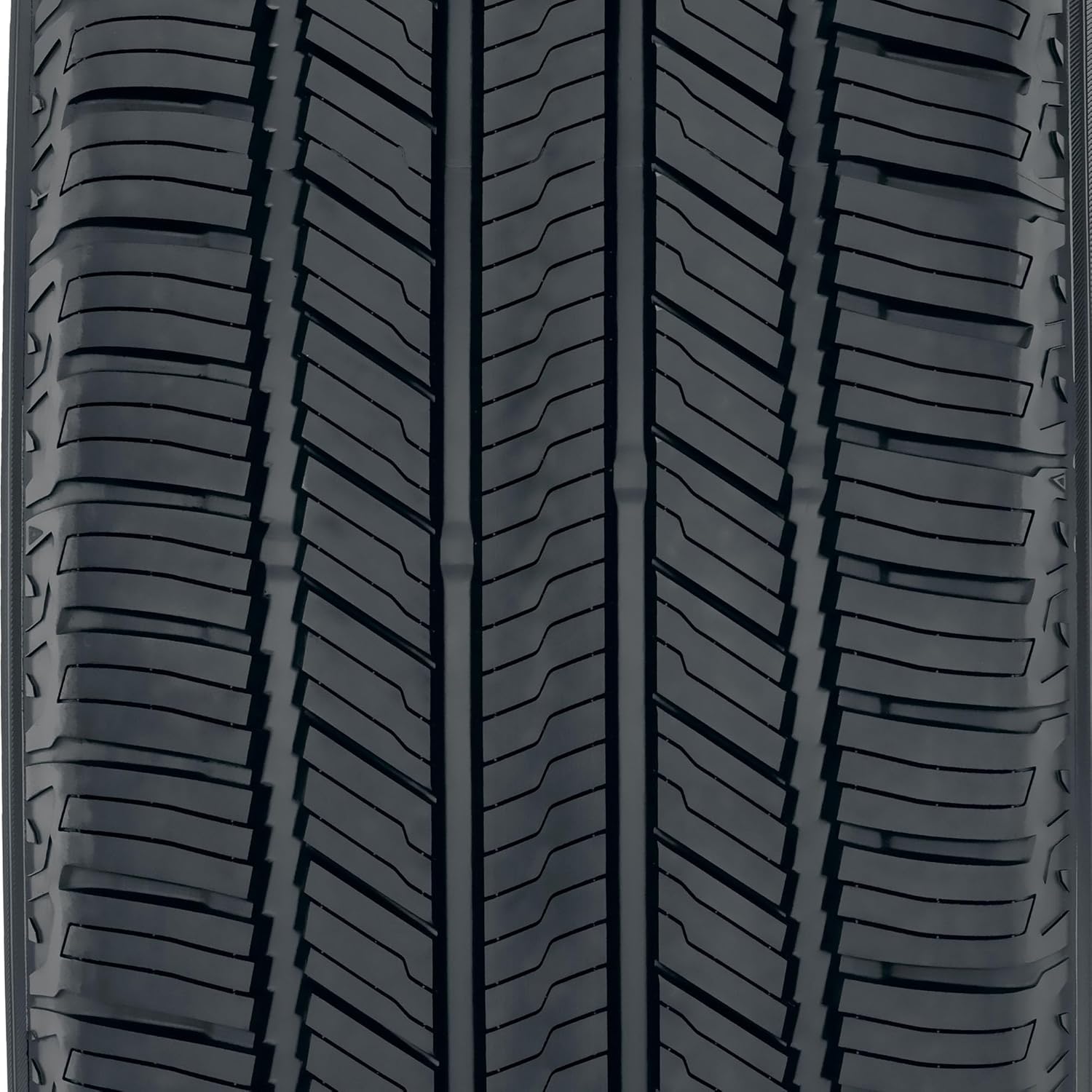 The Geolandar CV G058 from Yokohama is an all-season tire for drivers of CUVs, SUVs, and minivans. Backed by an up to 65,000 mile limited manufacturer tread life warranty, the Geolandar CV G058's circumferential and pass through grooves force water out of the tire to reduce the risk of hydroplaning on wet roads. The Geolandar CV G058 features a wide, flat profile that evenly distributes vehicle weight to promote a longer tread life, and a multi-pitch tread design that reduces road noises to create a quiet, comfortable ride for drivers and passengers.