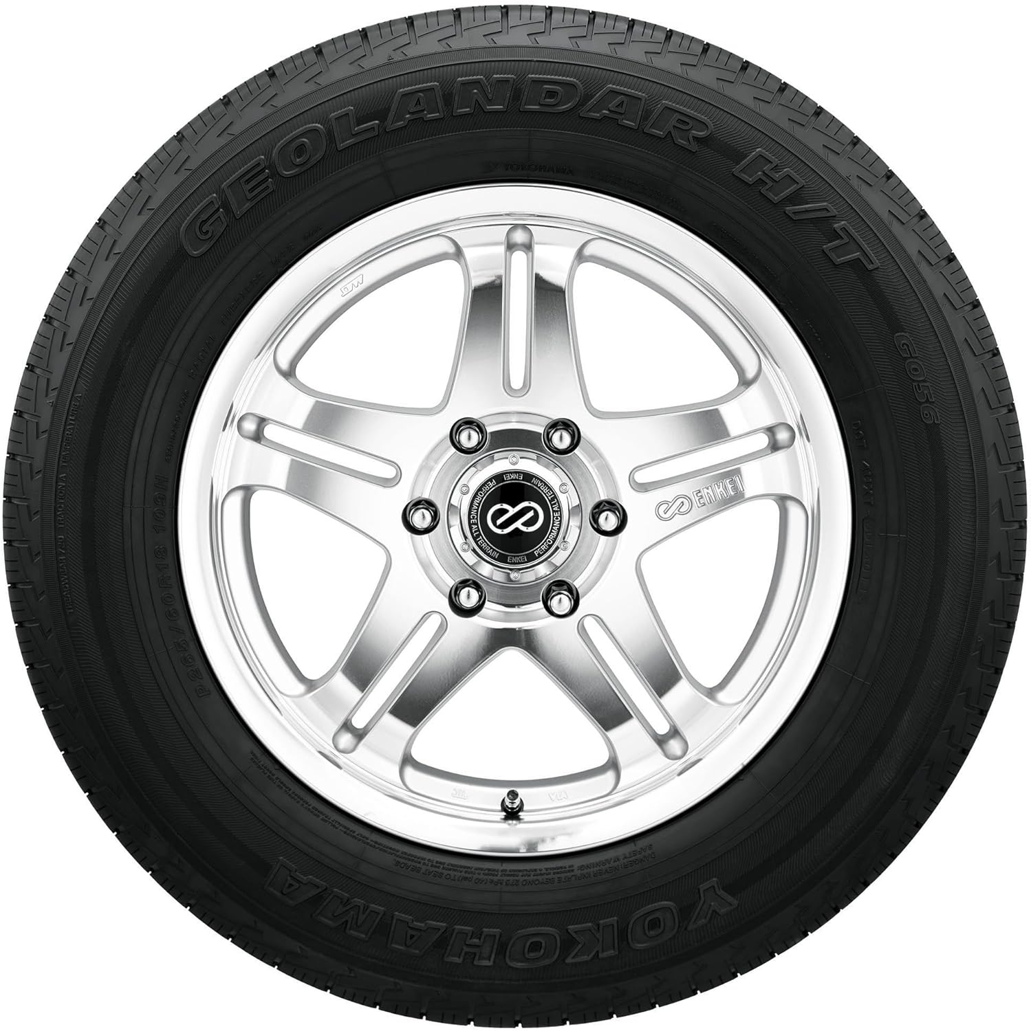 The Yokohama Geolandar H/T G056 is an all-season, highway-terrain tire that's designed for crossovers, SUVs, and light trucks. Packed with a great combination of quiet ride, longer service life, high durability, and year-round performance. The Geolandar H/T G056 features multi-pitch tread variation and adaptive shoulder blocks that limit tread noise for a quiet and comfortable ride. Backed by an up to 70,000 mile limited manufacturer treadwear warranty, the Yokohama tire comes with a 30-day satisfaction guarantee. Its sturdy construction, flat profile, and advanced silica compound ensure the tire lasts long. The Yokohama Geolandar H/T G056 is available in a wide range of tire sizes from 15 to 22 inches.