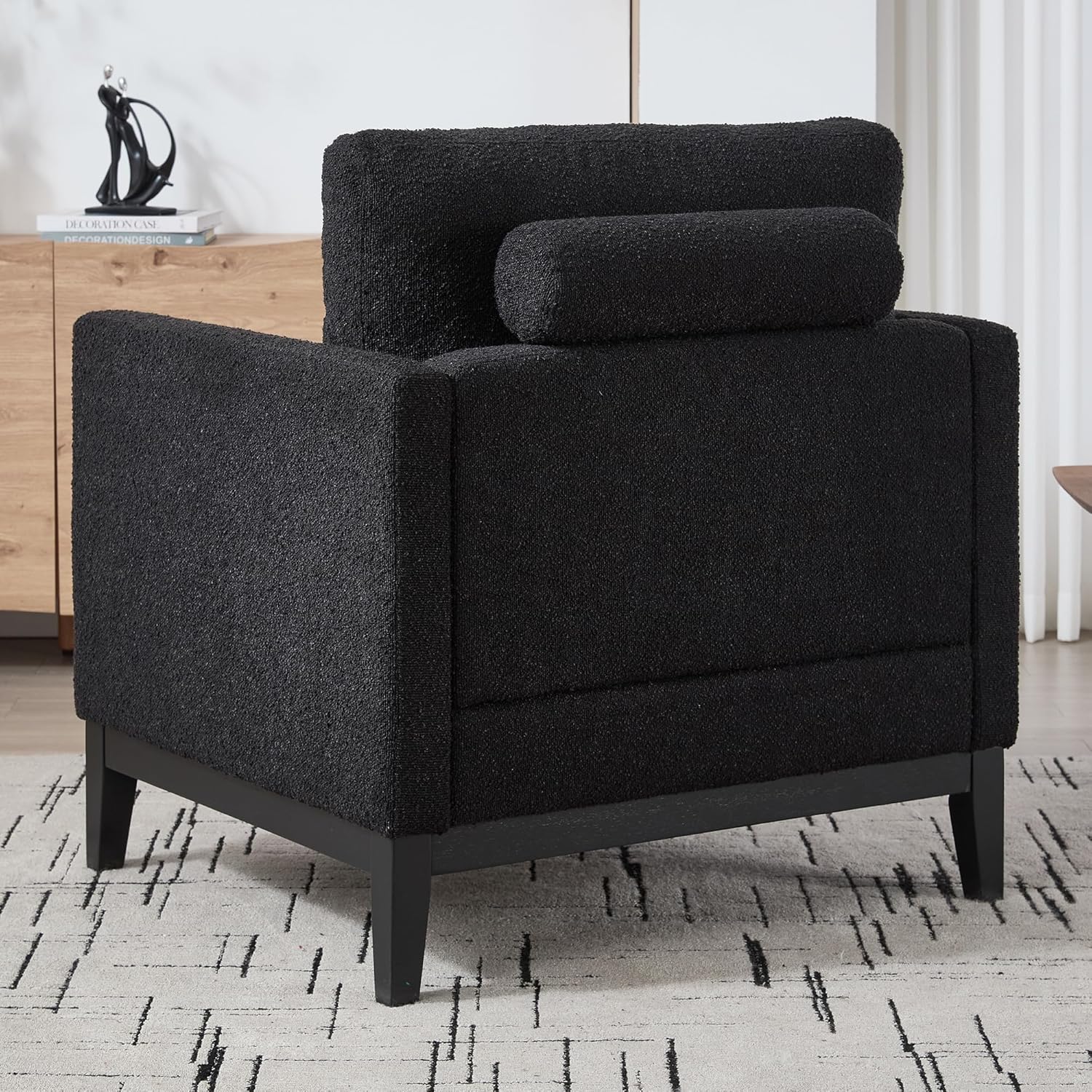 Yowan&Sillan 35.4" Wide Large Armchair Oversized Accent Chair,Modern Boucle Comfy Living Room Bedroom Reading Chairs Single Sofa,Black Wood Leg,Chairs for Lounge,Study,Office,Reception,Black