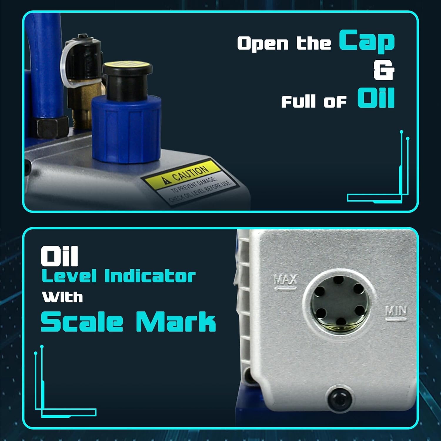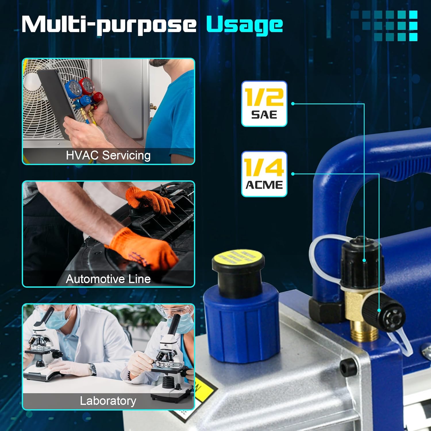 ZENY 3.5CFM Single-Stage 5 Pa Rotary Vane Economy Vacuum Pump 3 CFM 1/4HP Air Conditioner Refrigerant HVAC Air Tool R410a 1/4" Flare Inlet Port, Blue