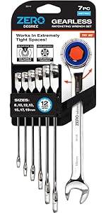 Zero Degree 38141 Ultra-Precise 7-Piece Gearless Ratchet Wrench Set – Nickel Plated High-Carbon Steel with ASME Certified Torque – Durable & Rust-Resistant – Perfect for Tight Spaces, Metric