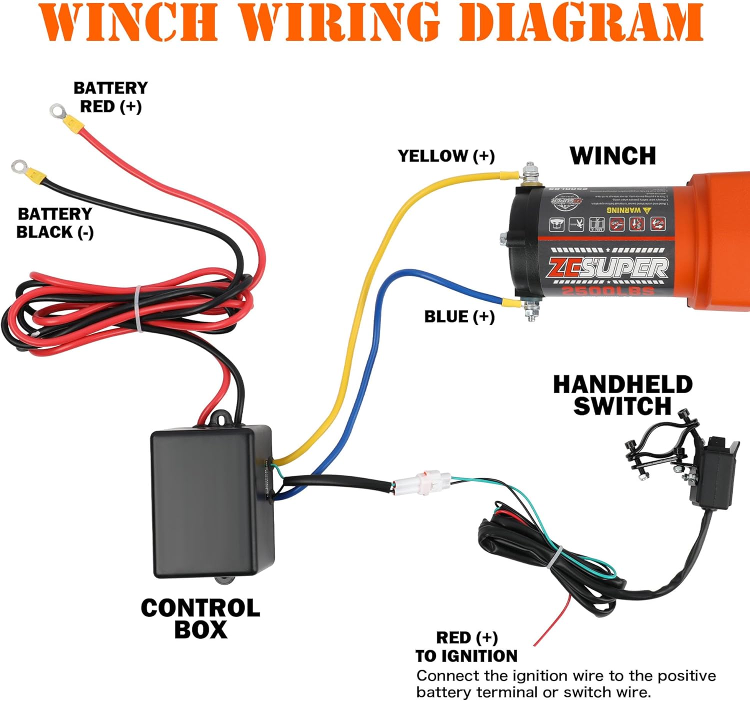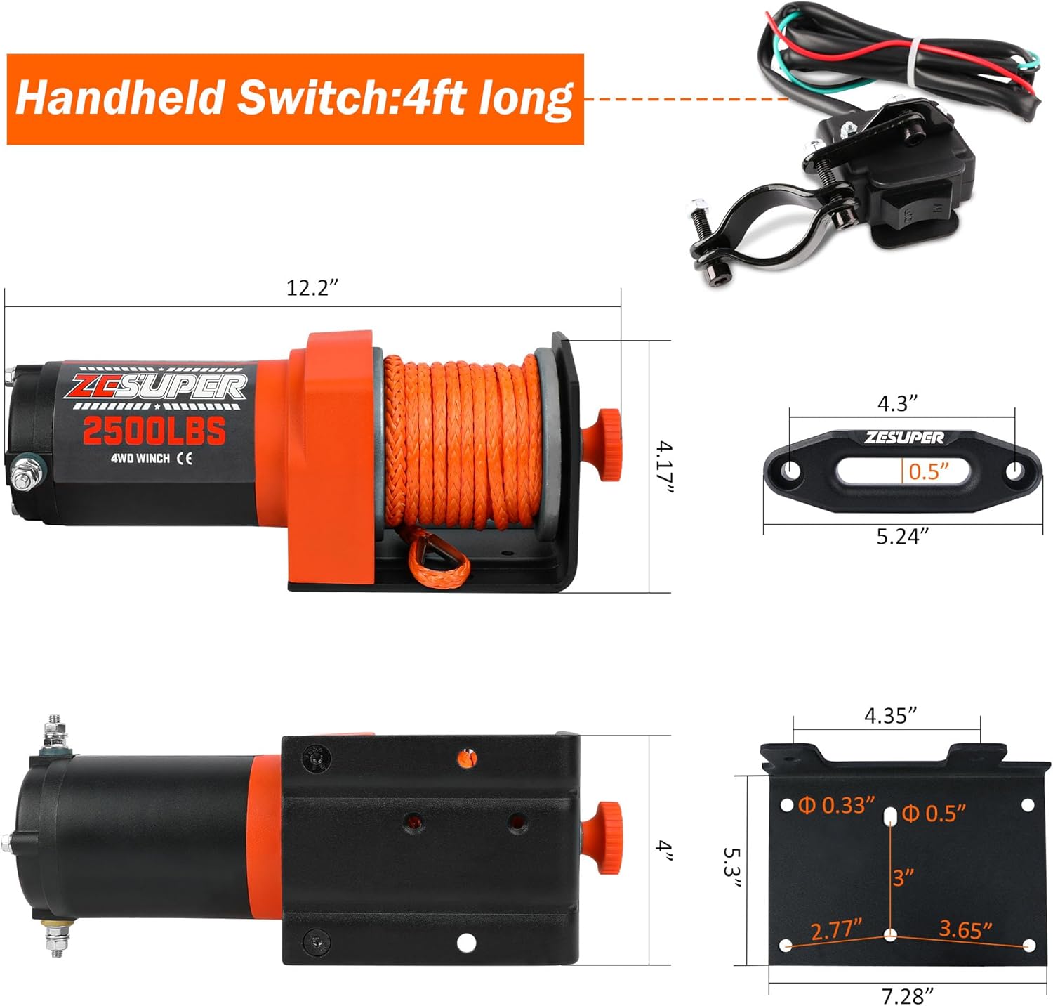 ZESUPER 2500 lb 12V DC Electric Winch 30 ft Synthetic Rope Off Road Waterproof UTV ATV Boat Winch Kits with Wireless Remote,Handheld Switch